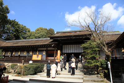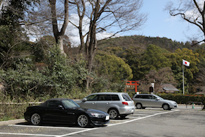 ホテルから直行でやって来たのは、上賀茂神社。 付属の有料駐車場にエスを停める。 |