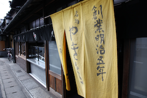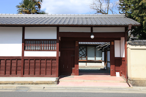 上賀茂神社から出て、東の方へ延びる道を行くと、道路沿いに豊かな水量が流れる小川を伴った土塀の街並みがある。 現存する屋敷でお店を開いていたりと、世界遺産上賀茂神社のちょっとした参道のような雰囲気になっている。 |