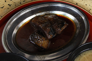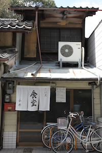 | その神馬堂と、上賀茂神社の駐車場の間くらいにあった今井食堂。 ここのサバ煮定食が絶品という記事を本か何かで見ていたので、昼飯には少し早かったが、暖簾がかかってたこともあって入ってみることにした。 |