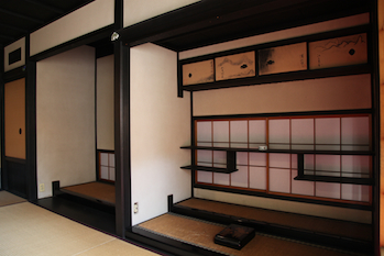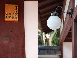 次に案内されたのが、書院である。 その伝統的な社家の遺構自体、この界隈では非常に貴重なのだが、更に三玲による庭園や茶室が織り込まれていることによって、更に貴重な文化財となっている。 |