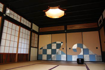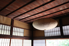 書院の天井には、イサム・ノグチの照明が吊るされていた。 この伝統的空間で、2人の稀代の芸術家が、何を感じて何を語り合ったのか、それを考えると無性にワクワクする。 |