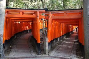 | 稲荷山に立つ朱塗りの千本鳥居は、全部で5000本近くあるとか。。。 1本1本に寄進した年月と個人名や会社名が掘られている。 人々の願いとともに立てられた鳥居の集合体。その結果生み出される空間に何を感じるか・・・ |