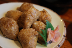 | お目当てのおいなりさんは、大粒で食べ応えバッチリだった。しかもすごく美味い。 おやつとかいうレベルじゃなく、立派に夕食になってしまった。 |