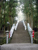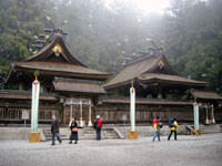 熊野本宮大社 言わずと知れた全国の熊野信仰の総本山。山中にひっそり、というわけではなく、本宮町の町中にずでんという形で鎮座しています(というか大社の周りに街ができたんだろうが)。 |