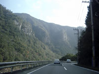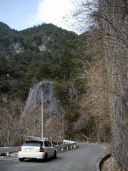 国道169号(瀞峡) 瀞峡(どろきょう)沿いの169号は、かなりの狭路。しかも距離が長いので、集中力と忍耐力が要求されるハードコース。こんな道が延々続くので、瀞峡という景勝地があるにもかかわらず、道行くクルマは皆無。完全な単独行♪ |
