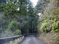路面は所々荒れていて、交通量の少なさがうかがえる。見通しも悪く、スピードを出せるような道ではないので気にならないが、2輪はスリップに気を付けた方がいいかも。 EK9くらいの車幅なら苦労はしないだろうが、3ナンバーのクルマはすれ違いが難しいだろう。まぁそんなクルマで入り込むような道ではないのは確かである。 |