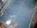 | 上の写真の手前に見える囲いは、源泉が湧出する湯桶。 ここでタマゴや野菜を茹でたりするわけです。私も近くの売店でタマゴを買って温めておいたんですが、、、なんと盗まれてしまいました。。(まったく、心の貧しい人がいるもんだ) |