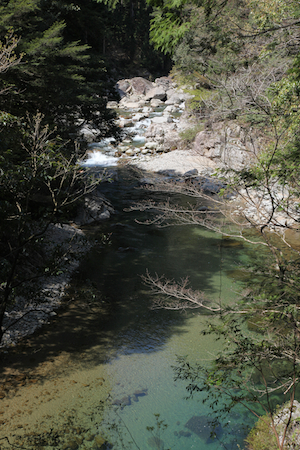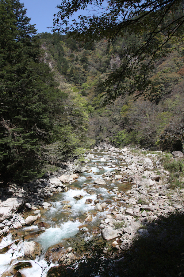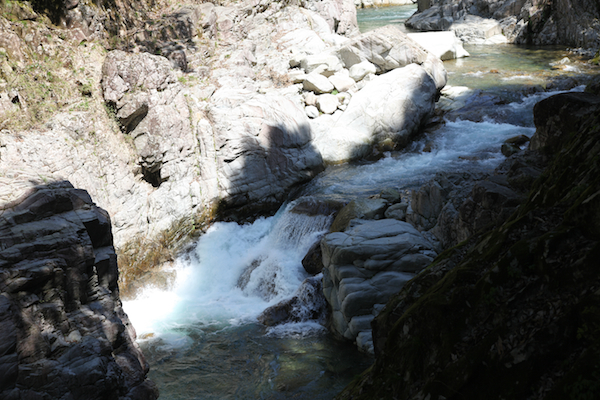| 三段峡の名所と言われるスポットはほとんど見ないことになるが、別に人が決めたスポットを見なければ行ったことにならないという理由は無い。 自分で決めた範囲内で渓谷を歩くだけでも、その魅力は体感できるんじゃないかと思うのだ。 |