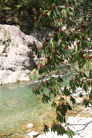 その渓谷、匹見峡へと続く県道は、道路脇に花が咲き誇り、カラフルで美しい景色が展開した。 GWの中国地方の旅は、ちょうど花の季節ということもあり、行く先々で車窓から見る景色にはこんなにも花が存在するのかと驚いたほどである。 |
