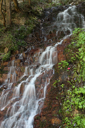 | 途中には大きな滝がある。 その他にも、渓流の流れが狭まって速くなったり緩やかになったり。 |