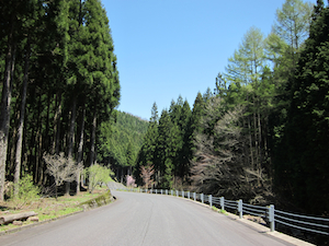 | 周囲が林に囲まれ爽やかな青空が視界に広がるようになった頃、R191から大規模林道に折れた。 今回の旅ではちょくちょく登場することになった広域農道の類。今日も行き先とは関係なく、走ってみたいから走るのである。それがR styleツーリングの原点なのだから。 |