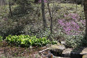 食事を終えて回りを偵察すると、水芭蕉が群生する小さな湿原があった。あるものと言ったらそれくらい。 水もあるしトイレもあるので、キャンプは充分にできそうだったが、それが良いのかダメなのかは定かではない。 |