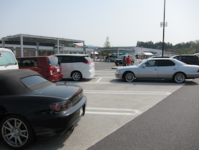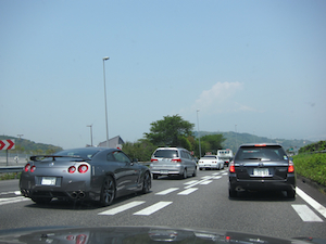 正午頃、富士川SAの辺りで2度目の渋滞。でも、東名でここまで渋滞らしい渋滞ががなかったということだけでもラッキーだ。 左前にR34GT-R。 |