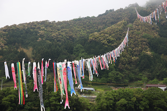 旧十和村、現四万十町の十川という集落では、この時期、四万十川を跨ぐようにして鯉のぼりを渡す、川渡しが名物になっているようだ。 |
