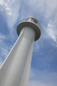 灯台を望む展望台へはすぐに出ることができる。 |