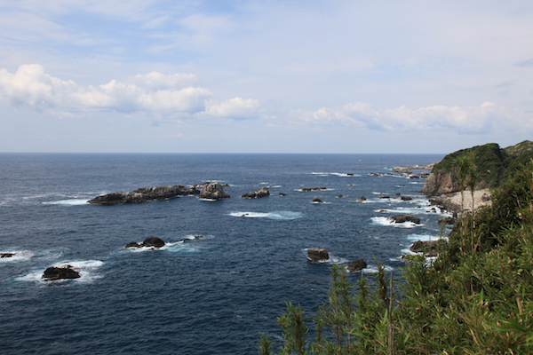 潮の流れが打ち寄せ、岩場を叩く音が、雄大な音楽のようにも聞こえてくる。 自然の領域って感じがするけど、実際には岩場の上には多くの釣り人が・・・ 今立っている展望台にも、非常に多くの人が景色を楽しんでいる。 |