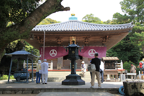 足摺岬にある礼所、金剛福寺に行ってみることにした。 中村からここまでくる間、非常に多くのお遍路さんを見かけたのは、このお寺がここにあるからに他ならない。 この1ヶ所歩いて行くだけで、えらい日数と時間がかかるだろうに。。(こんなトコにつくりやがってって思ってるに違いない) |