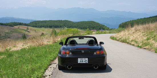 雪が解け、花の季節がようやく始まったかのような美ヶ原の高原。 S2000というオープンカーに乗ってドライブしていると、そういった季節の音やニオイを実に身近に感じることができる。 屋根のあるクルマやヘルメットを被るオートバイ以上に、周囲の世界との繋がりを強く感じることができるオープンカー。 |